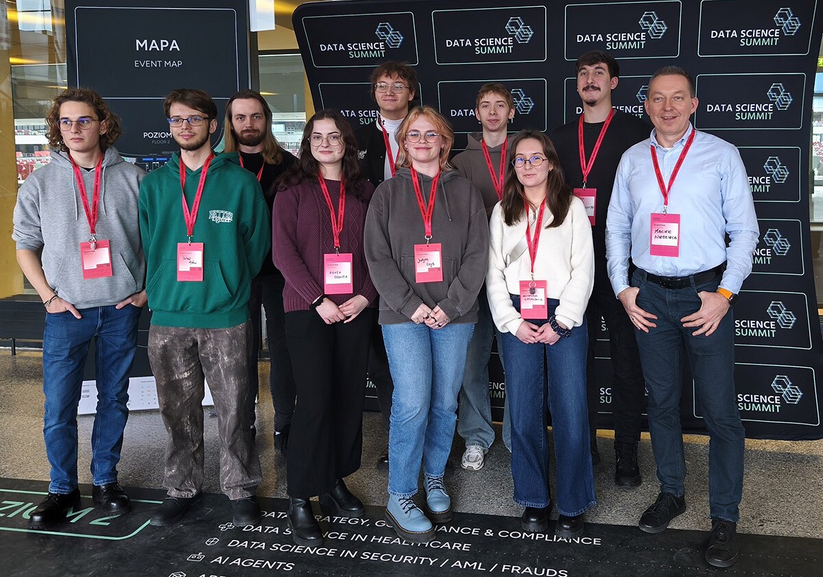 Członkowie Koła Naukowego Matematyki Stosowanej Insight uczestniczyli w konferencji Data Science Summit 2025 w Warszawie, jednym z najważniejszych wydarzeń w Polsce poświęconych analizie danych, uczeniu maszynowemu, przetwarzaniu sygnałów i wdrożeniom AI. Wyjazd został zrealizowany w ramach projektu „LiDARLab – system pozyskiwania i analizy danych 3D do zastosowań inżynierskich i komercyjnych”, dofinansowanego w ramach konkursu „Klakson – Impuls do innowacji”, edycja VI. Udział w wydarzeniu ma kluczowe znaczenie dla rozwoju kompetencji zespołu, bezpośrednio wspierając cele projektu związane z zaawansowaną analizą danych przestrzennych oraz tworzeniem autorskich algorytmów do przetwarzania chmur punktów.